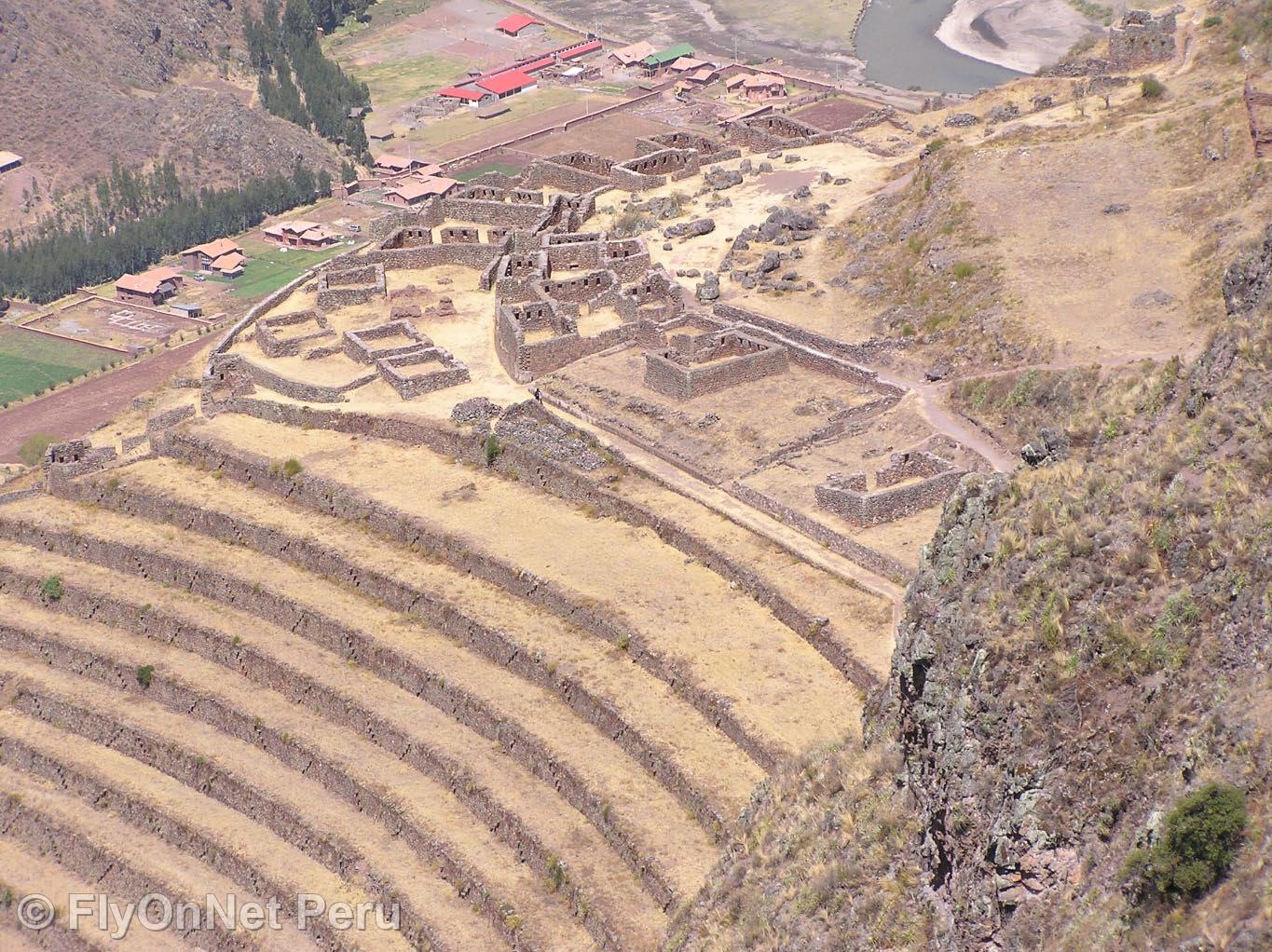 Город был разделен на отдельные зоны, отражающие различные социальные и религиозные функции. Сельскохозяйственная зона с идеально выровненными террасами использовалась для выращивания продуктов питания для местного населения. Эти террасы также играли ключевую роль в управлении водными ресурсами, предотвращая эрозию и обеспечивая оптимальное использование ресурсов. Сложные ирригационные каналы демонстрируют мастерство инков в управлении водой.